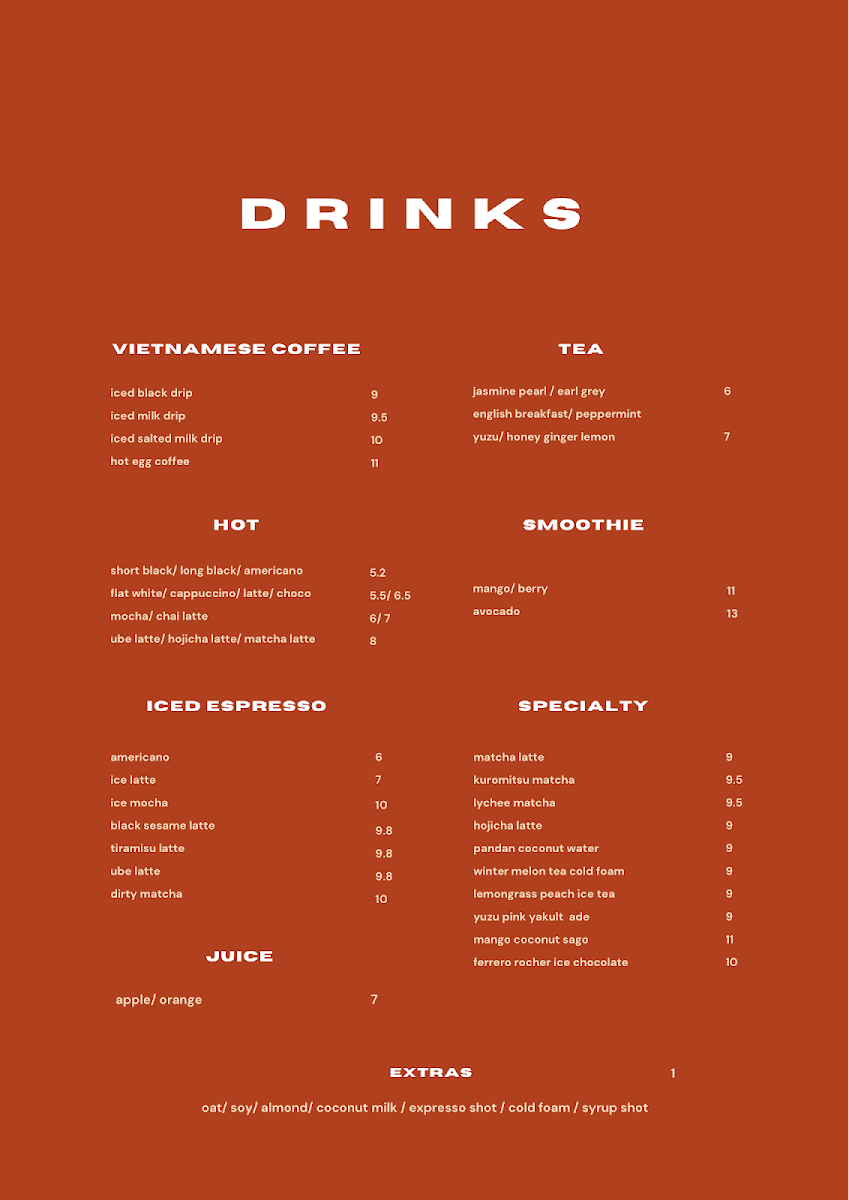 oat/ soy/ almond/coconut milk/expresso shot/cold foam / syrup shot